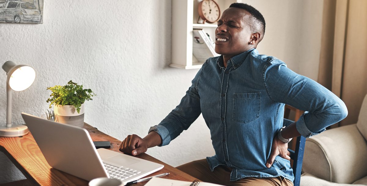 Many of my patients who have chronic back pain feel more pain as a result of working at home. Even those whose backs don’t normally bother them talk about feeling stiff and sore